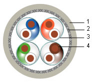 Shielded twisted pair cable (SSTP), Category 7 (1200 MHz), 4 pairs, Solid, Outdoor, 22 AWG, PE